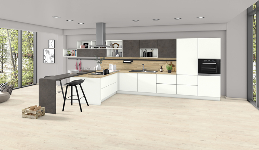 Το Oak Butcherblock είναι δημοφιλές ώς πάγκος εργασίας, φαίνεται κομψό λόγω της στενών του σανίδων, ενώ δείχνει χειροποιήτο. Το Oak Butcherblock αποτελείται από μια ποικιλία από ρουστίκ στοιχεία, τυπικά της δρυός, αλλά παραμένει υπέροχο λόγω της γκρίζας φυσικης απόχρωσης του. Ο απαλός γκριζωπός τόνος δεν φαίνεται ιδιαίτερα εκκεντρικος . Επιτρέπει συνδυασμούς με φωτεινά και σκούρα μονόχρωμα και άλλα υλικά.